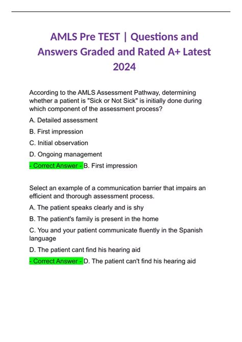 [UniqueID] - Read AMLS PRETEST ANSWER KEY Kindle Editon